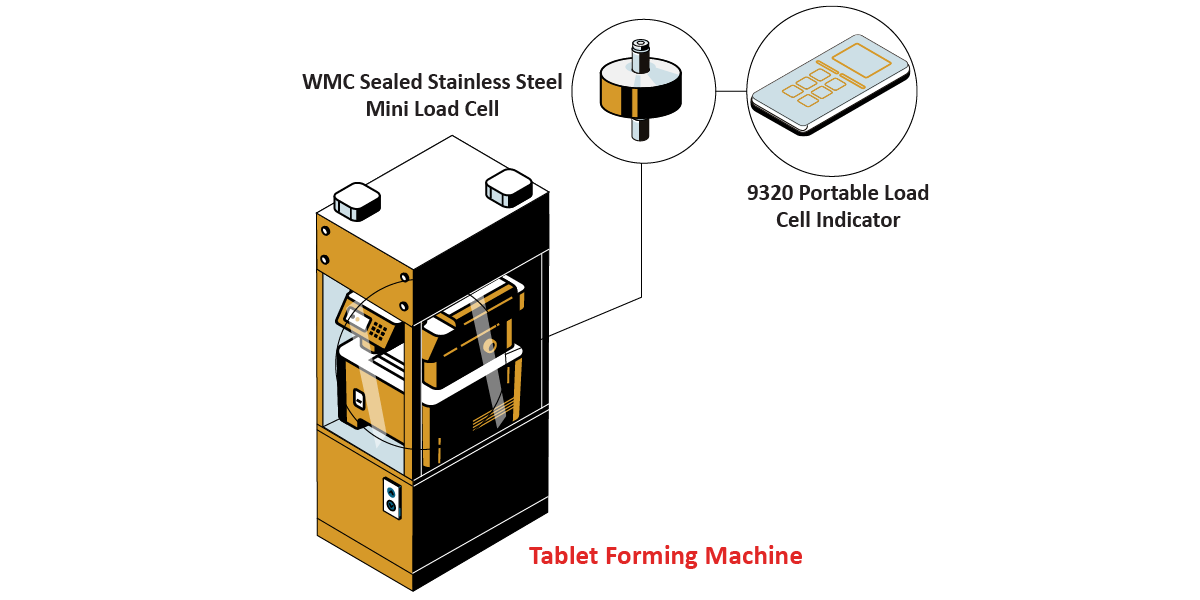 A pharmaceutical tablet producer wanted to monitor the forces applied by the tablet forming machine to understand the relationship between raw material, die set, forming force, and motor-cycle speed. The goal was to improve productivity and efficiency of the tablet forming process while reducing losses, such as cracked tablets or voids, by adding a dimension of feedback that could be used to assign specific press adjustment criteria for given inputs.