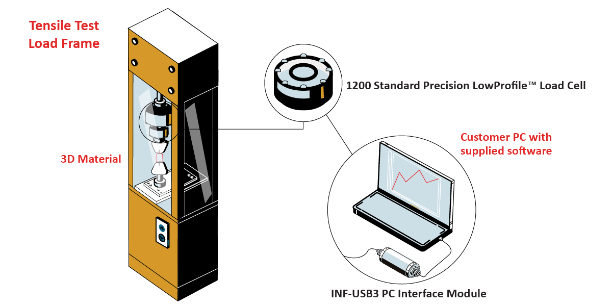 Interface 1200 Standard Precision LowProfile™ Load Cell compact yet exceptionally accurate sensors seamlessly installed into the engineer’s custom test frame. The force results, captured by the load cell, were then precisely synced through Interface’s INF-USB3 Universal Serial Bus Single Channel PC Interface Module, providing a comprehensive and reliable data stream. This real-world application highlights Interface’s ability to provide tailored solutions for emerging manufacturing technologies, offering the critical data needed to validate and advance 3D printed materials. Read more about this material testing application solution here. Read Tensile Testing For 3D Materials.