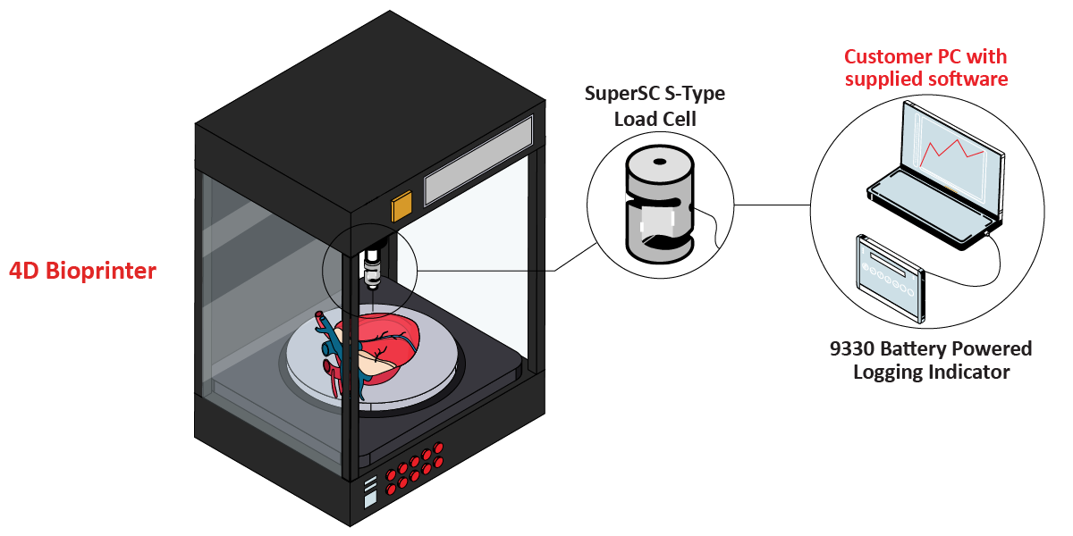 During medical R&D, load cells used in medical device prototypes can detect pressure or tension within the printed construct. 4D printing for bioprinting utilizes 3D printing techniques to create functional structures. Forces and stresses need to be measured during the printing processes.