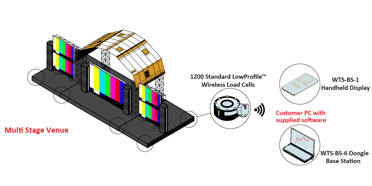 Concert venues both indoor and outdoor use multiple stages allowing simultaneous shows and acts to occur. Monitoring the loads per stage is a necessity to ensure the stability of the stage structures, along with safety of all working personnel.