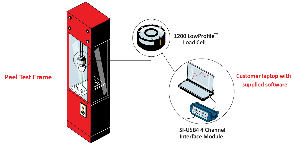 A peel test measures the properties and strength of an adhesive bond. Peel tests involve applying a tensile force to a flexible substrate that is bound by an adhesive to either another flexible substrate. This can be tape, thin film, or rubber, or a rigid substrate such as metal, or rigid plastic. A force measurement system is required for the peel test.
