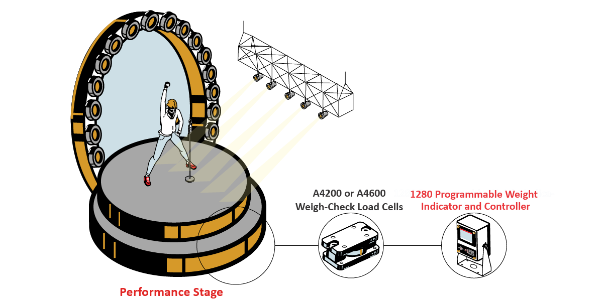 Performers and entertainers have special stages built to perform in concerts for their fans. From the largest sports events half-time shows to other complex staging, a force measurement system is needed to ensure the safety for all performers, equipment, and scenery on stage.