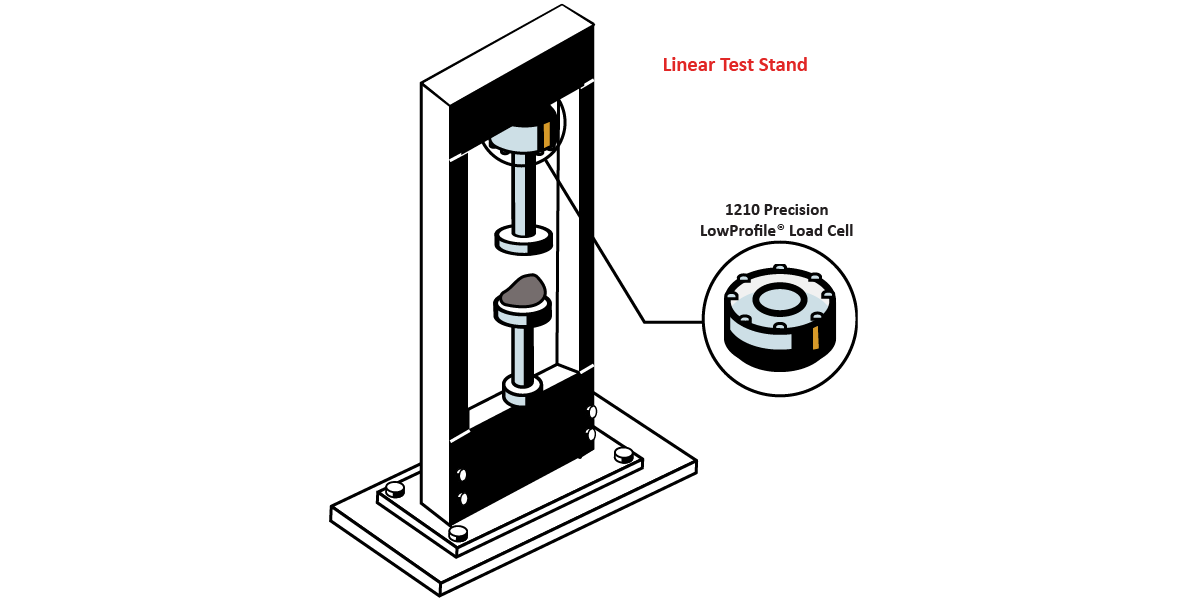In this example, an Interface customer wanted to add a crush test to their test stand to measure the force it took to deform a piece of material. Interface provided a Model 1210 Load Cell with an internal amplification of 0-10VDC output.