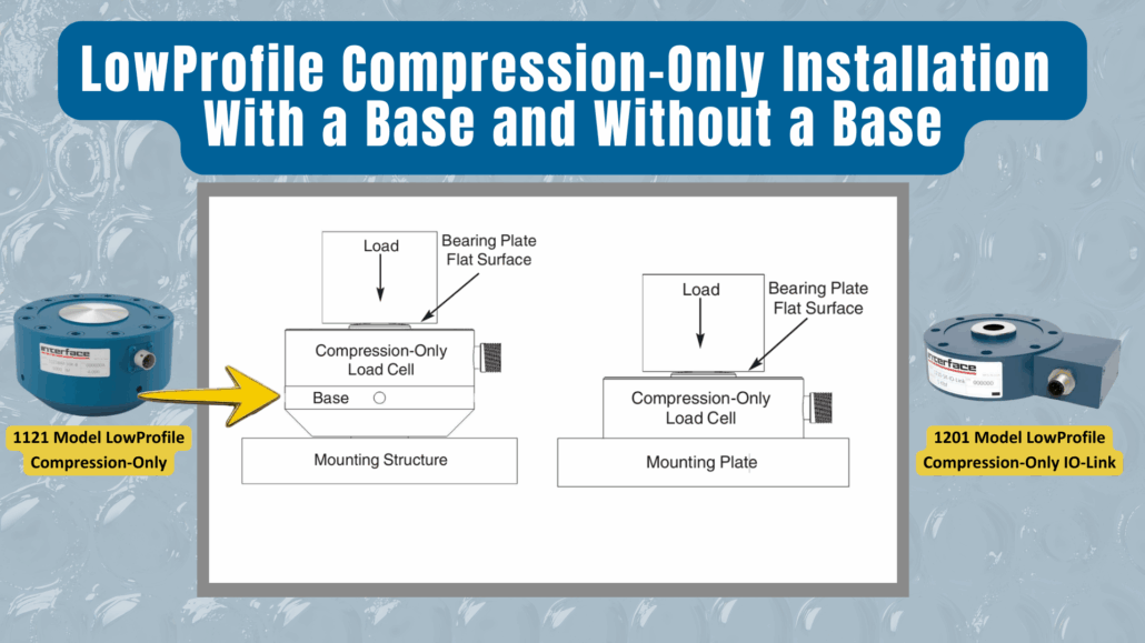 The Interface popular models 1101, 1201, and 3201 Compression-Only Series LowProfile Load Cells must be installed on a flat, rigid surface that remains stable under the full force of the application.